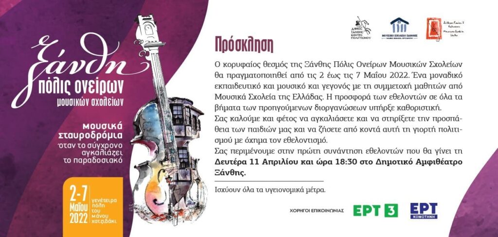 Ξάνθη πόλις ονείρων μουσικών σχολείων Leave a Comment / Διοικητικά, Χωρίς κατηγ. / By Ένωση Συλλόγων Γονέων Ξάνθης
